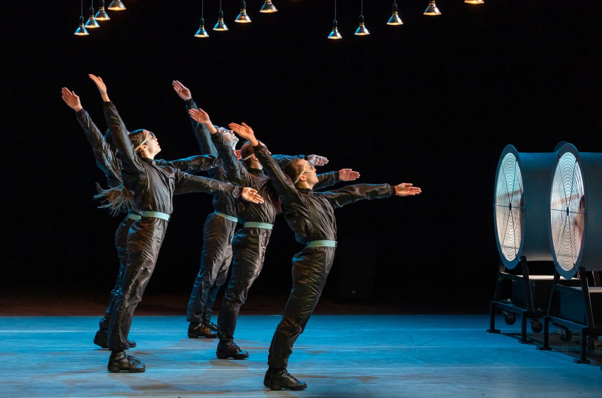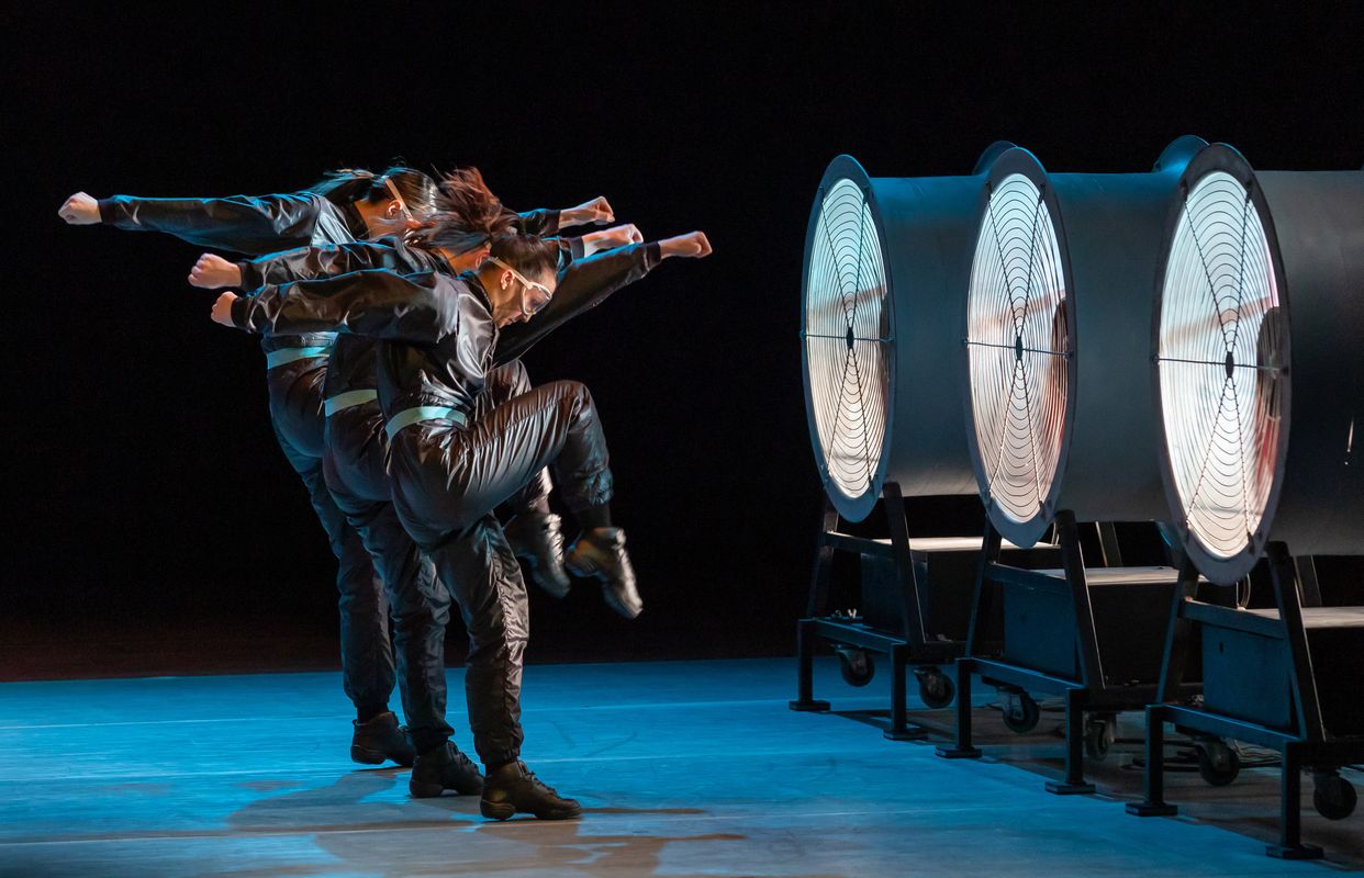 Hier kijkt elke dansliefhebber naar uit: de monumentale dansvoorstelling ‘Typhoon’ (1986) van Krisztina de Châtel, de koningin van de minimalistische dans, wordt hernomen. Ze werkte voor deze choreografie samen met beeldend kunstenaar Peter Vermeulen. Die kwam met drie windmachines, die in kracht kunnen variëren van een lichte bries tot een flinke storm. In een windstille proloog bereiden de dansers van Introdans zich voor op wat komen gaat, begeleid door de pianoklanken van Simeon ten Holts Canto Ostinato. Ze hangen uit het lood alsof ze tegen de wind leunen. Hun armen klieven door de lucht. Ze zijn klaar voor de strijd. Dan overstemt het aanzwellend geraas van de windmachines de zachte pianoklanken: de dansers zuigen de longen vol en gaan het gevecht aan met de (onzichtbare) materie, die zij al dansend tastbaar maken. De choreografische ordeningsdrang van De Châtel wordt in deze voorstelling als het ware in een vliegende storm beproefd.