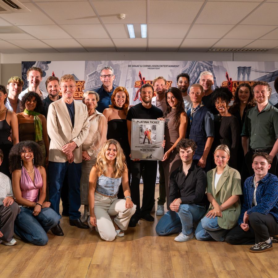 Met nog anderhalve maand tot aan de première, 29 september ‘24 in Theater aan de Parade in ’s-Hertogenbosch, werd vanmorgen de cast van de vernieuwde musical Saturday Night Fever tijdens de repetities door producent Hans Cornelissen verrast met de VVTP Platina Ticket Award voor de verkoop van meer dan 50.000 kaarten.